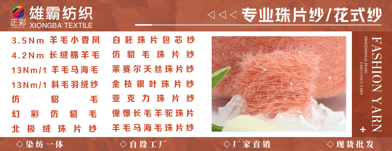东莞市雄霸纺织品有限公司扎根于中国纺织产业核心地带——广东东莞,是一家集研发、生产、销售于一体的现代化纺织企业。公司深耕珠片纱、染色纱及特种纱线领域十余载,以卓越品质和创新技术为驱动,致力于为全球客户提供高附加值的纱线产品解决方案。 【核心业务领域】1. **珠片纱定制专家** 专注珠片纱研发生产,采用精密织造工艺与环保材料,打造闪光渐变、幻彩炫光等多元视觉效果,产品广泛应用于高端晚礼服、舞台演出服、时尚手袋及家居装饰领域,以独特光影魅力赋能设计创意。 2. **出口纱线全案服务** 主营差异化出口纱线加工,涵盖棉、涤纶、粘胶、和纸、亚麻、腈纶、羊毛、羊绒混纺等多品类,提供从原料筛选、工艺优化到成品包装的一站式服务。配备国际标准验货体系,产品远销欧美、东南亚、中东等30余个国家和地区。 3. **专业染色技术标杆** 引进德国智能染整设备,搭建数字化配色实验室,实现散纤染色、筒子纱染色、段染等全工艺覆盖。独创颜色搭配控制体系",提供2000+潘通色卡精准匹配,同步开发环保染色系列,满足GRS、OEKO-TEX等国际认证需求。 【智造实力】- 生产规模:3万平米智能化生产基地,8条全自动生产线,年产能超1.8万吨- 技术团队:20人专业研发小组,持有12项实用新型专利- 品控体系:通过ISO9001质量管理认证,执行AQL2.5抽检标准 【服务承诺】践行"色彩+功能+时效"三维服务体系,支持小批量柔性定制(5kg起订),配备专属跟单团队保障7天交期,提供免费样品开发及技术咨询服务。 雄踞湾区,织就华章。东莞市雄霸纺织品有限公司将持续聚焦新材料应用与可持续生产,以匠心织造连接全球时尚产业链,赋能每一根纱线的价值绽放。